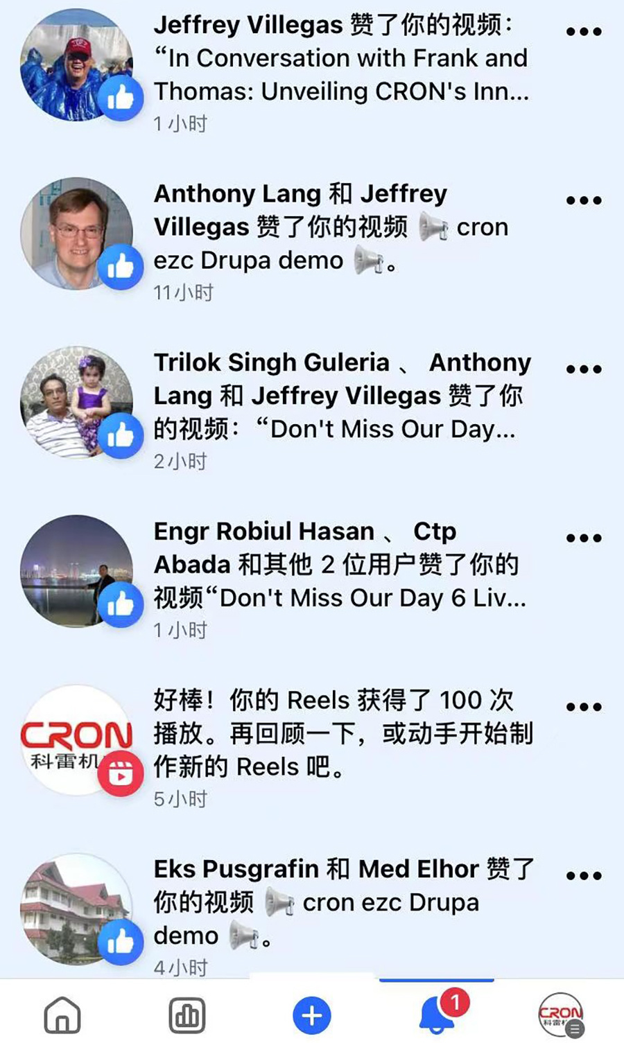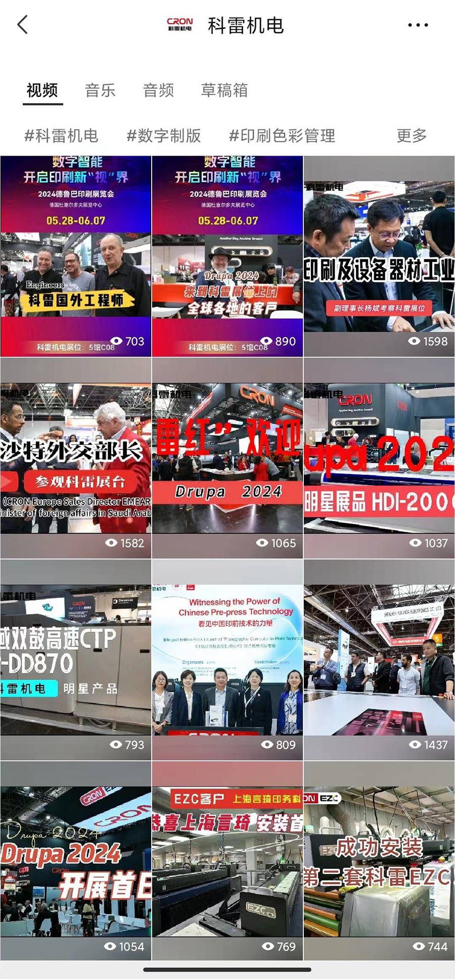 CRON's official Douyin and video channels have been showcasing thrilling videos from the Drupa event for 10 days straight, enabling remote audiences to experience the exhibition online. This initiative enhances viewer engagement and immersion.