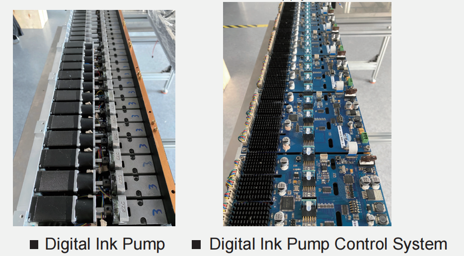 The EZC digital ink pump system consists of two core components: a high-precision (μm-level) ceramic ink pump and a digital ink pump control system. It provides real-time dynamic ink supply, delivering ink accurately on a per-sheet basis with precision up to the μL level. There is no transmission errors, it enables direct and accurate ink supply.